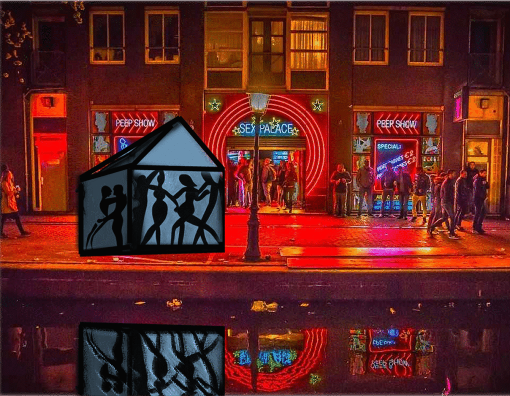 The houses are made of plexiglass, with custom paintings printed onto the surface.